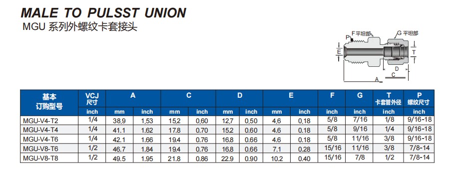 MGU 系列外螺纹卡套接头