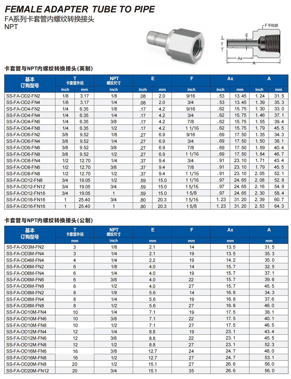 ■ 规格 :1/16 至 2 in 和 2 mm 至 50 mm.